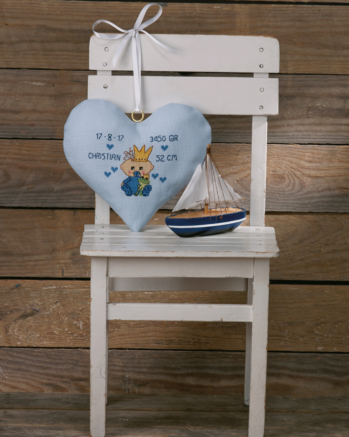 Broderet med korssting (sy med delt garn 2/6) og stikkesting (sy med delt garn 2/6).