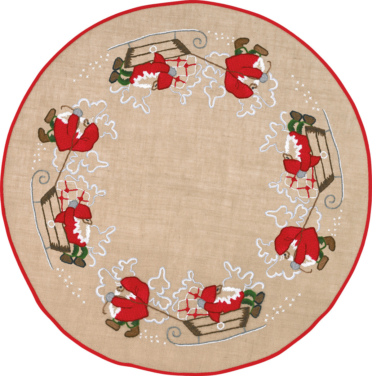 Færdigmonteret juletræstæppe med påsyet kantebånd