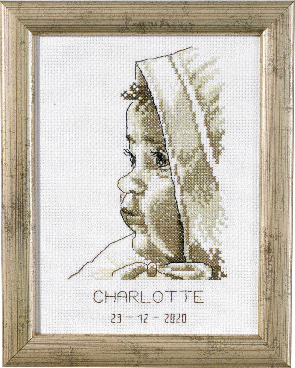 Mit Kreuzstich (Nähen mit geteiltem Garn 2/6) und Steppstich (nähen mit geteiltem Garn 1/6) bestickt.
