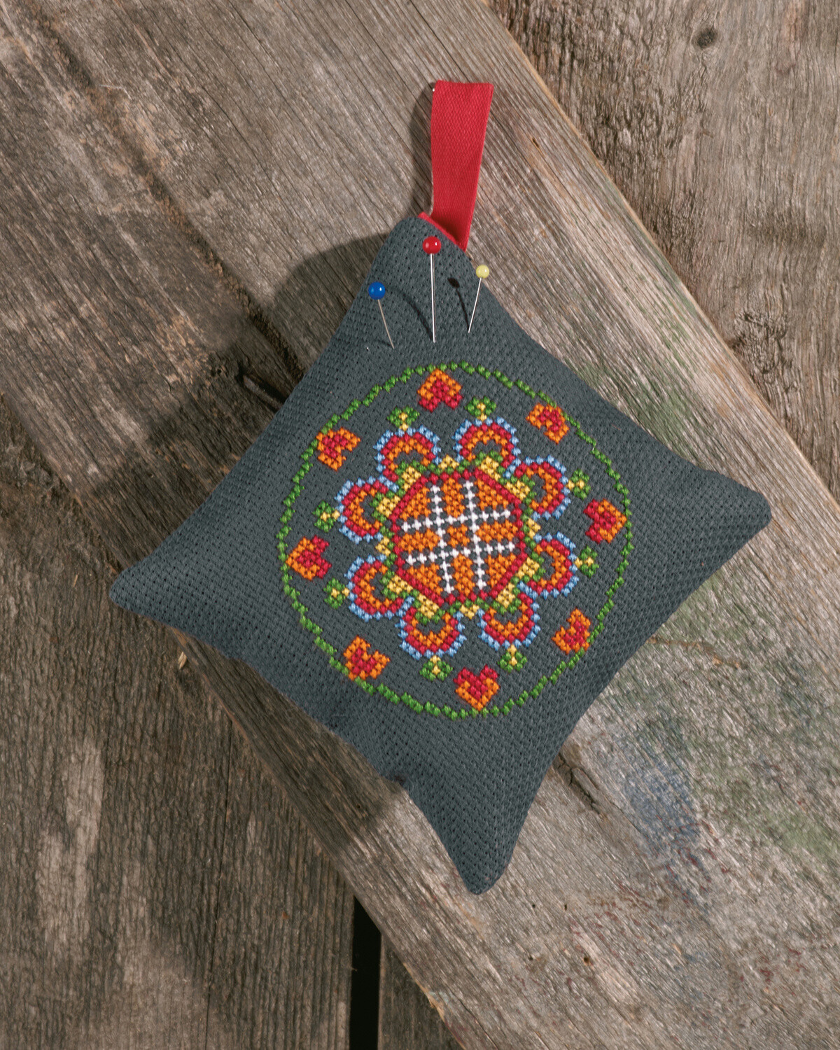 Embroidered with cross stitch (sewing with split yarn 2/6).