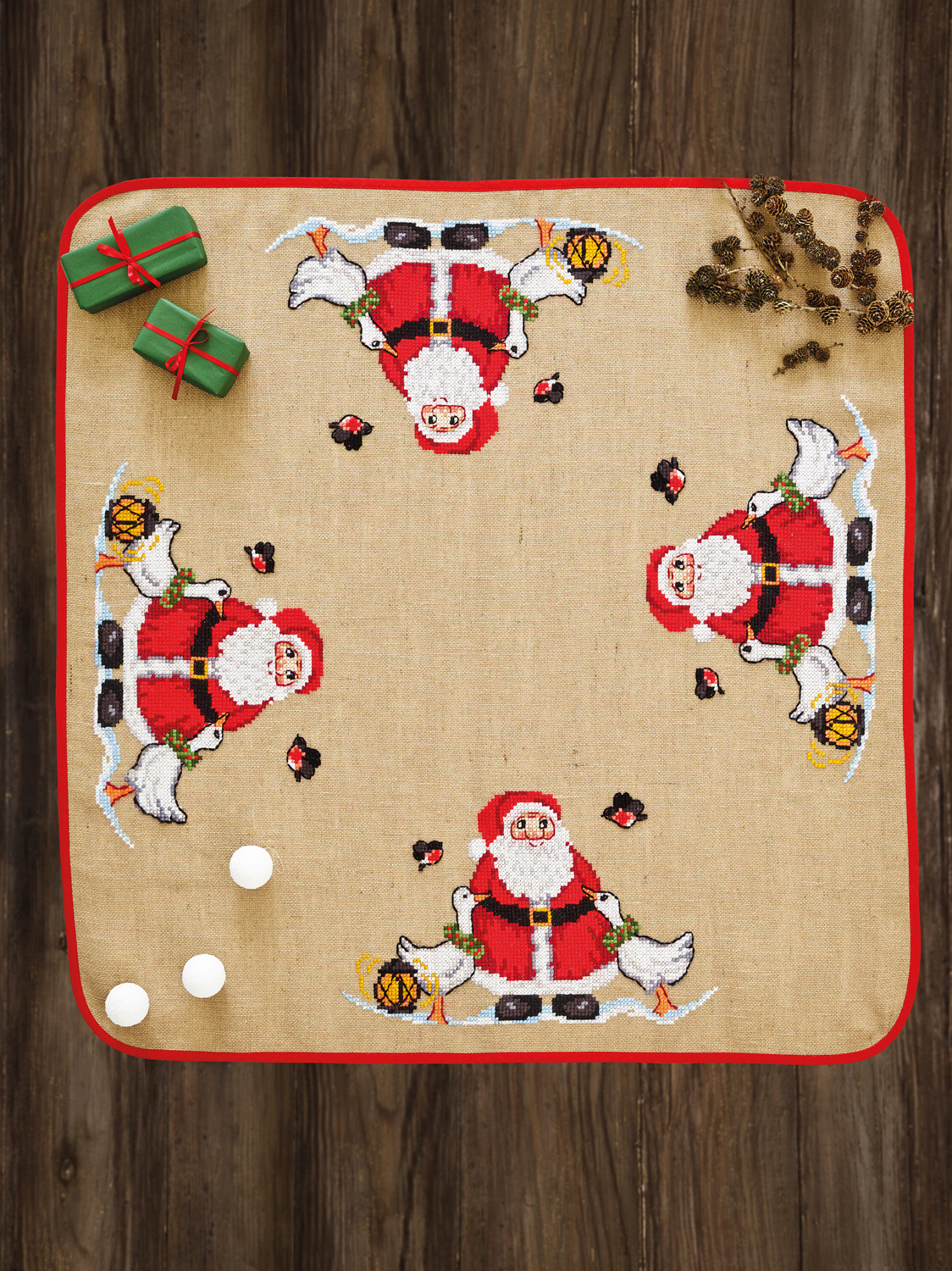 Papá Noel y gansos 120x120cm