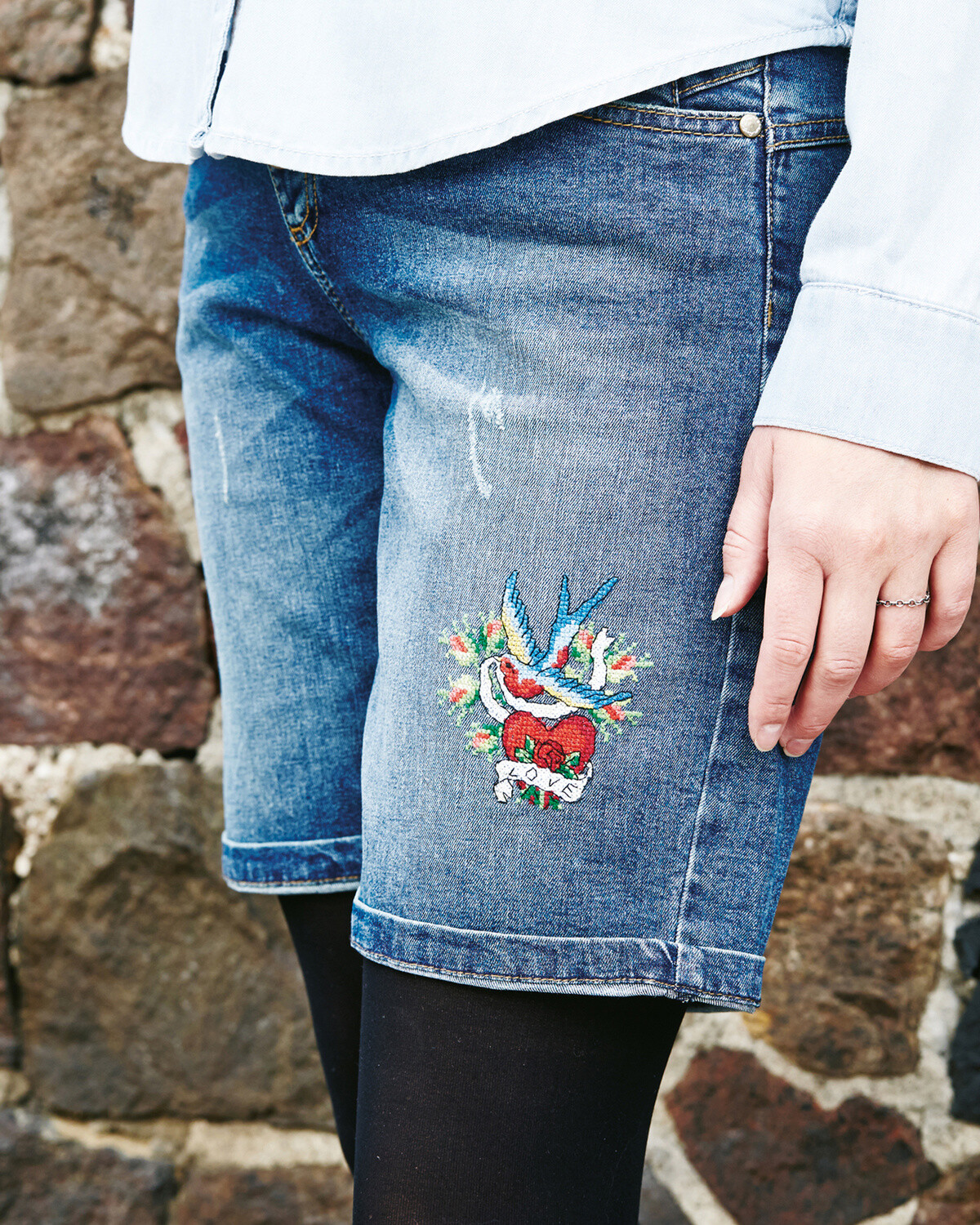 Bordado con punto de cruz (coser con hilo partido 2/6), puntada (coser con hilo partido 1/6)