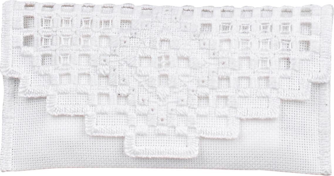 A coudre Hardanger 180/00, 9 fils/cm en blanc 1 couleur DMC Perlegarn 115/5, 1 couleur DMC Perlegarn 116/8