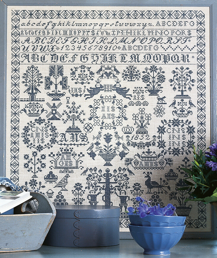 Brodé au point de croix (coudre avec le fil fendu 2/6) et au point (coudre avec le fil fendu 2/6).