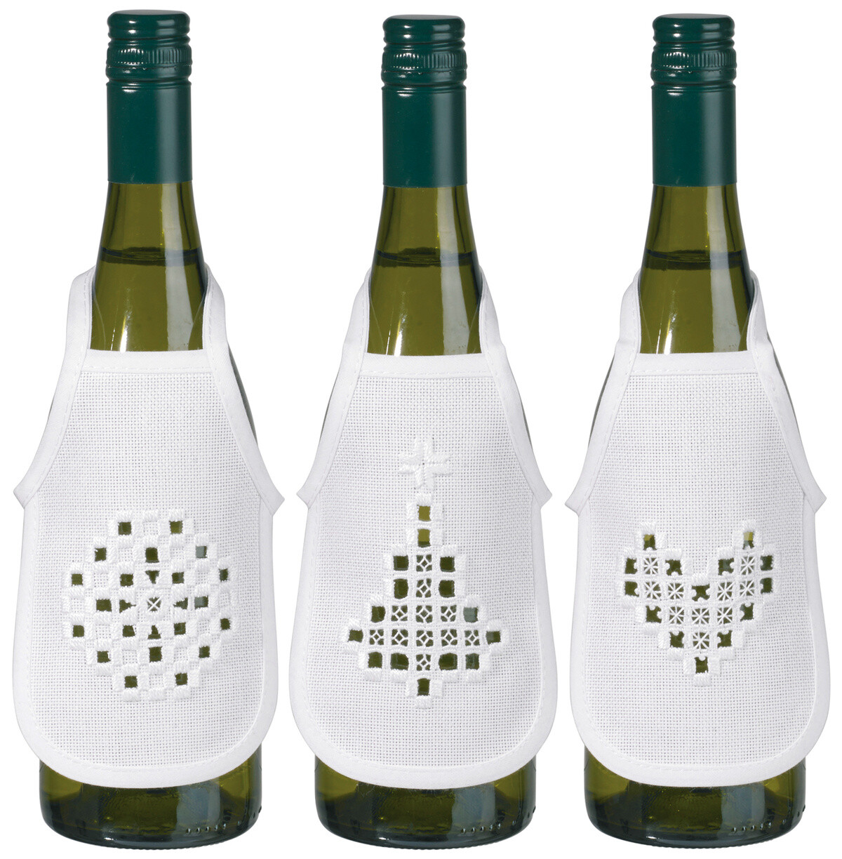 Cuci il grembiule per bottiglia Hardanger 0330/180 con fascia bianca. 1 colore DMC Perlegarn 115/5, 1 colore DMC Perlegarn 116/8