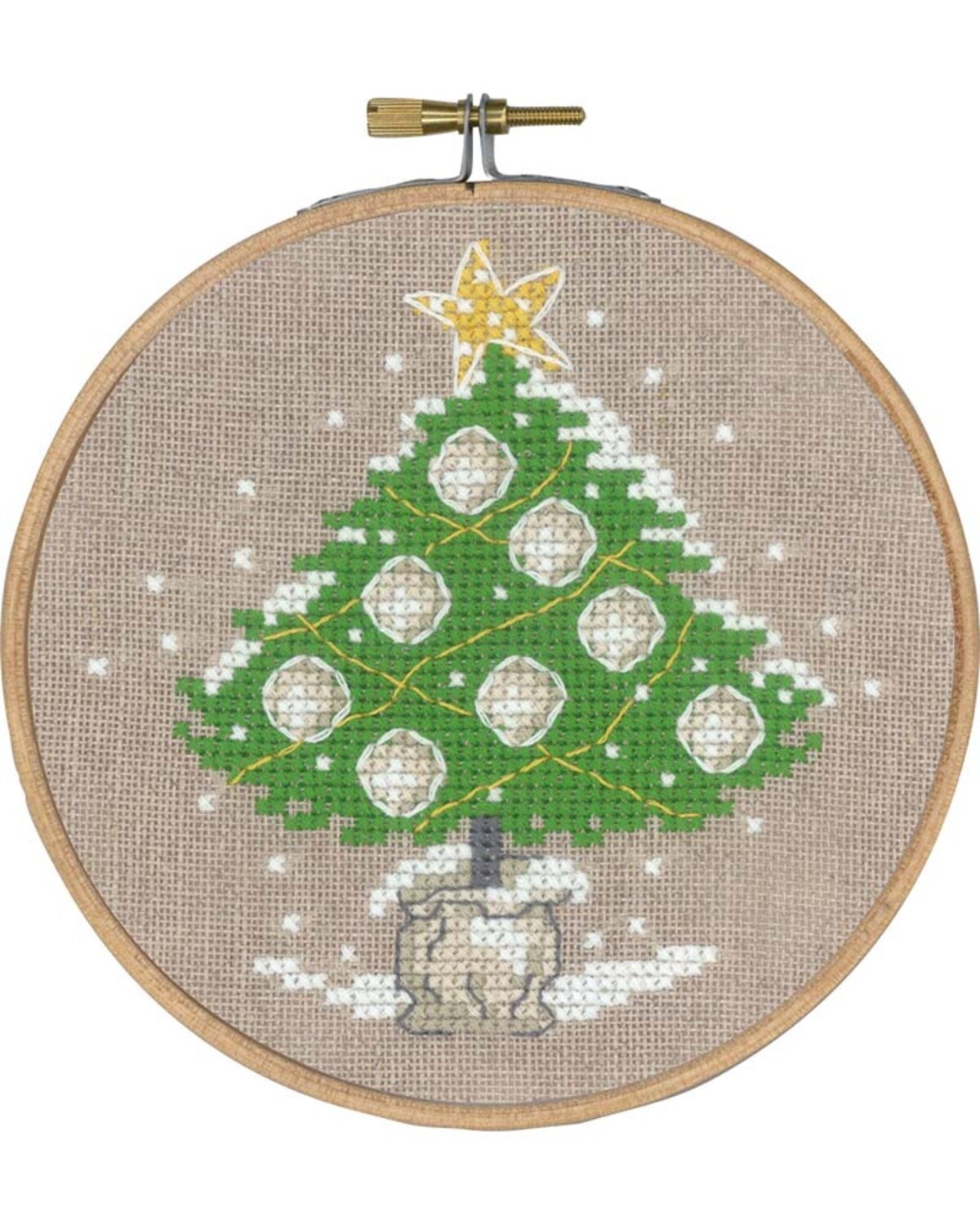 Geborduurd met kruissteek (naai met splitgaren 2/6) en steek (naai met splitgaren 1/6).