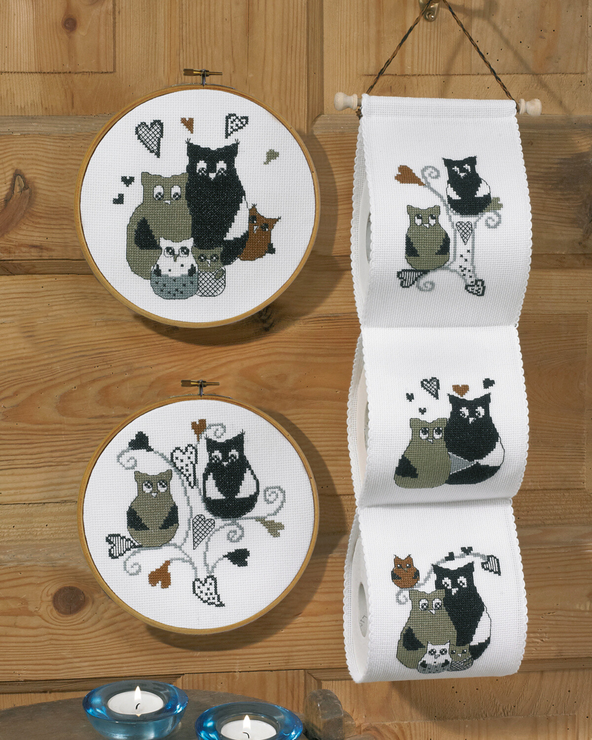 Broderet med korssting (sy med delt garn 2/6) og stikkesting (sy med delt garn 2/6 og 1/6).